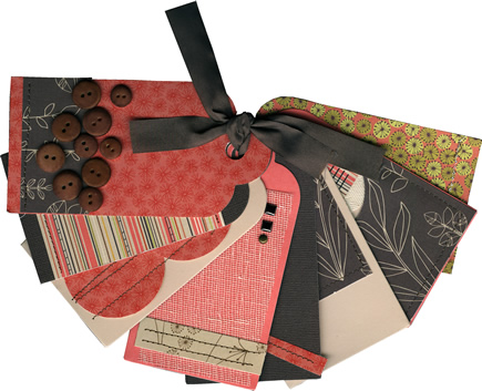 บางแบบจะเป็นกระดาษแข็ง แล้วก็จะเจาะรูด้านบนไว้สำหรับให้เราผูกริบบิ้น หรือใช้ brad (หมุดปัก) ปักเข้าไปค่ะ