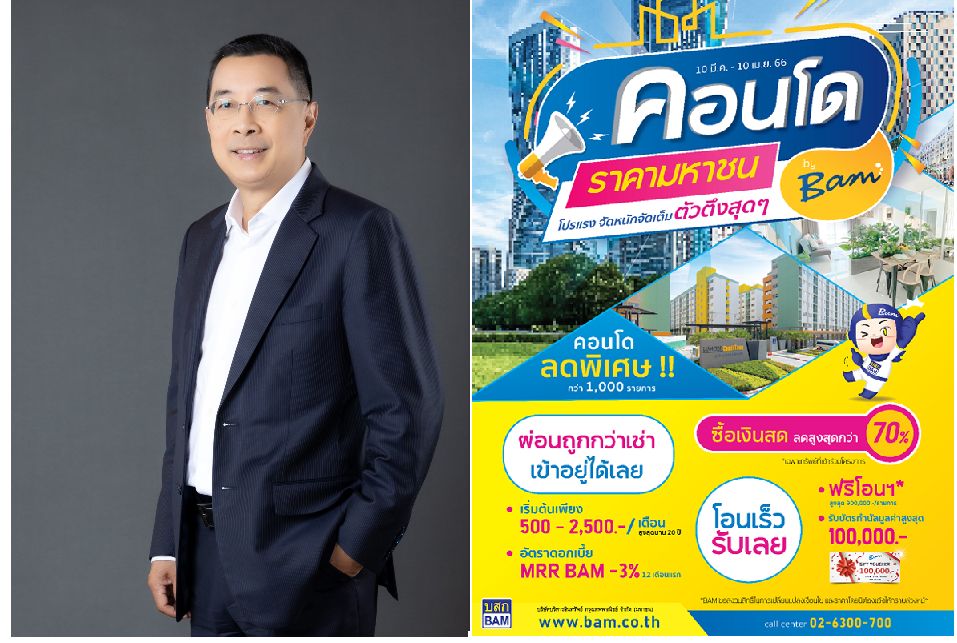 นายบัณฑิต อนันตมงคล ประธานเจ้าหน้าที่บริหาร บริษัทบริหารสินทรัพย์ กรุงเทพพาณิชย์ จำกัด (มหาชน) หรือ BAM กล่าวว่า ใน ปี 2566 BAM ยังมุ่งเน้นกลยุทธ์การทำตลาดเชิงรุกอย่างต่อเนื่อง โดยในช่วงวันที่ 10 มีนาคม – 10 เมษายน 2566 BAM เตรียมจัดงานภายใต้ชื่อ “คอนโดราคามหาชน by BAM” โดยคัดสรรคอนโดทำเลดีราคาพิเศษจำนวนกว่า 1,000 รายการ ทั้งในกรุงเทพฯ ปริมณฑล และต่างจังหวัด นำมาจัดโปรโมชั่นลดราคาเพิ่มสูงสุดกว่า 70% พร้อมอัดโปรแรง เมื่อลูกค้าซื้อเงินสดจะได้รับส่วนลดจากราคาพิเศษแบบลดแล้วลดอีก สำหรับคอนโดราคาพิเศษไม่เกิน 5 แสนบาทลดเพิ่มอีก 10% คอนโดราคาพิเศษมากกว่า 5 แสนบาท ถึง 1 ล้านบาท ลดเพิ่มอีก 20,000 บาท และยังมีส่วนลดพิเศษสุด เฉพาะสำหรับงานนี้เท่านั้น (สำหรับทรัพย์ที่เข้าร่วมโครงการ) ขณะที่ลูกค้าซื้อทรัพย์ BAM และโอนภายใน 30 วัน นับตั้งแต่วันที่อนุมัติขาย รับโปรโมชั่น “โอนเร็ว รับเลย” ฟรีค่าโอนสูงสุด 9 แสนบาท และบัตรกำนัลมูลค่าสูงสุด 1 แสนบาท